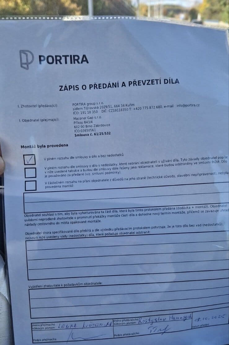 V Portira.cz si zakládáme na partnerství s odborníky v oboru, a proto nás velmi potěšila spolupráce z minulého roku pro společnost Maconer Gap s.r.o. Tato brněnská firma se věnuje komplexní správě, údržbě a výstavbě nemovitostí po celé ČR. Jsme rádi, že jsme se mohli stát součástí jedné z jejich zakázek a zajistit dodávku i montáž bezpečnostních dveří.