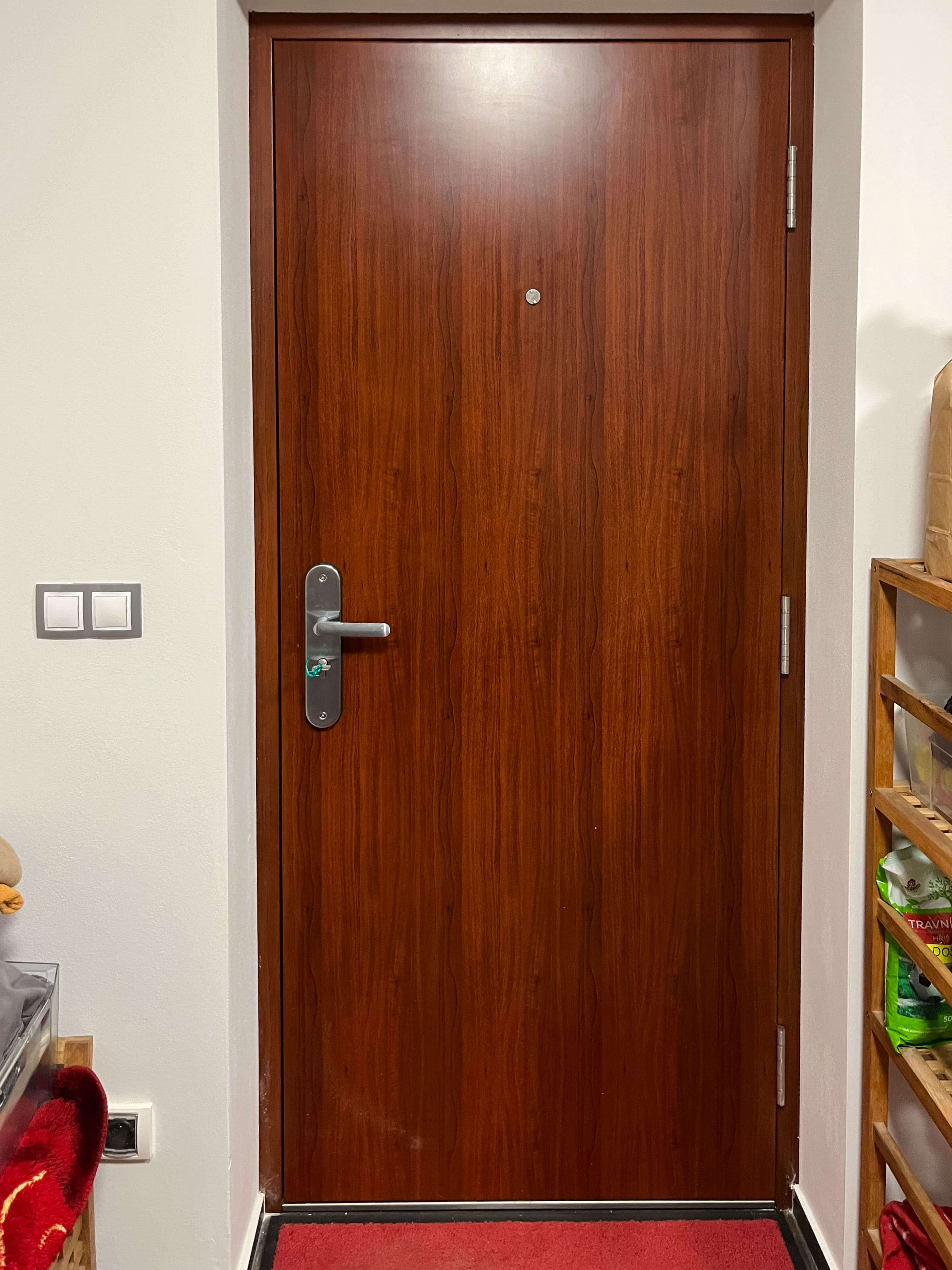 V Rajhradě si náš zákazník přál vyměnit staré vstupní dveře za bezpečnější a modernější variantu. Zvolil model v dekoru dub s bezpečnostním kováním v lesklém provedení a zasklením typu F3/S. Pro ještě vyšší pocit jistoty jsme navíc instalovali i bezpečnostní řetízek. Součástí zakázky byla demontáž původních dveří, montáž nového systému pomocí protipožární pěny a následné zednické zapravení vstupního otvoru. Samozřejmostí byla také ekologická likvidace starého vybavení. Celá realizace proběhla svižně a bez zbytečných komplikací – zákazník tak měl během jednoho dne hotovo a mohl se opět spolehnout na bezpečný vstup do svého domova.